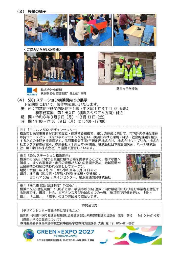 横浜市・ヨコハマSDGsデザインセンター・蒔田小学校と連携し、不要な什器を学校の机や本棚などの学校備品へアップサイクルする取り組みに協力しました。
